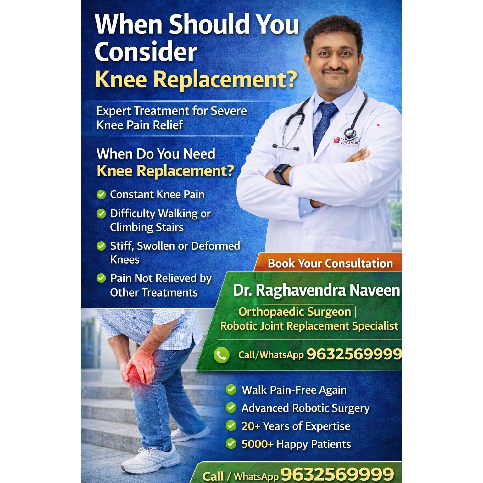 π Book an Appointment Now with Dr. Raghavendra Naveen Orthopedic Surgeon | Robotic Joint Replacement & Arthroscopy Specialist , lead consultant Sparsh hospital Yelahanka , Bangalore, India.